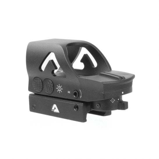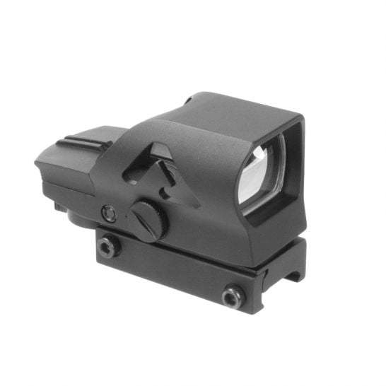 Enjoy precision targeting with this Full Size 1x34mm Reflex Sight. Features dual illumination options and four different reticle designs. Ideal for low-light scenarios, providing clear and accurate sight. Suitable for avid hunters and shooting enthusiasts. Enhance your shooting accuracy today with this versatile reflex sight.