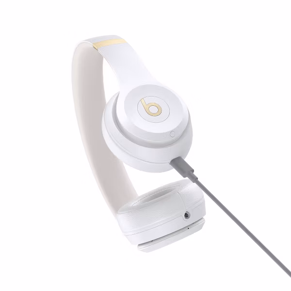 The Beats Solo 4 in Warm White is an engaging wireless headphone offering high-quality sound. It comes with a soft case for protection and easy portability, a cord for wired use, and a USB cord for efficient charging. Truly an ideal choice for music lovers.