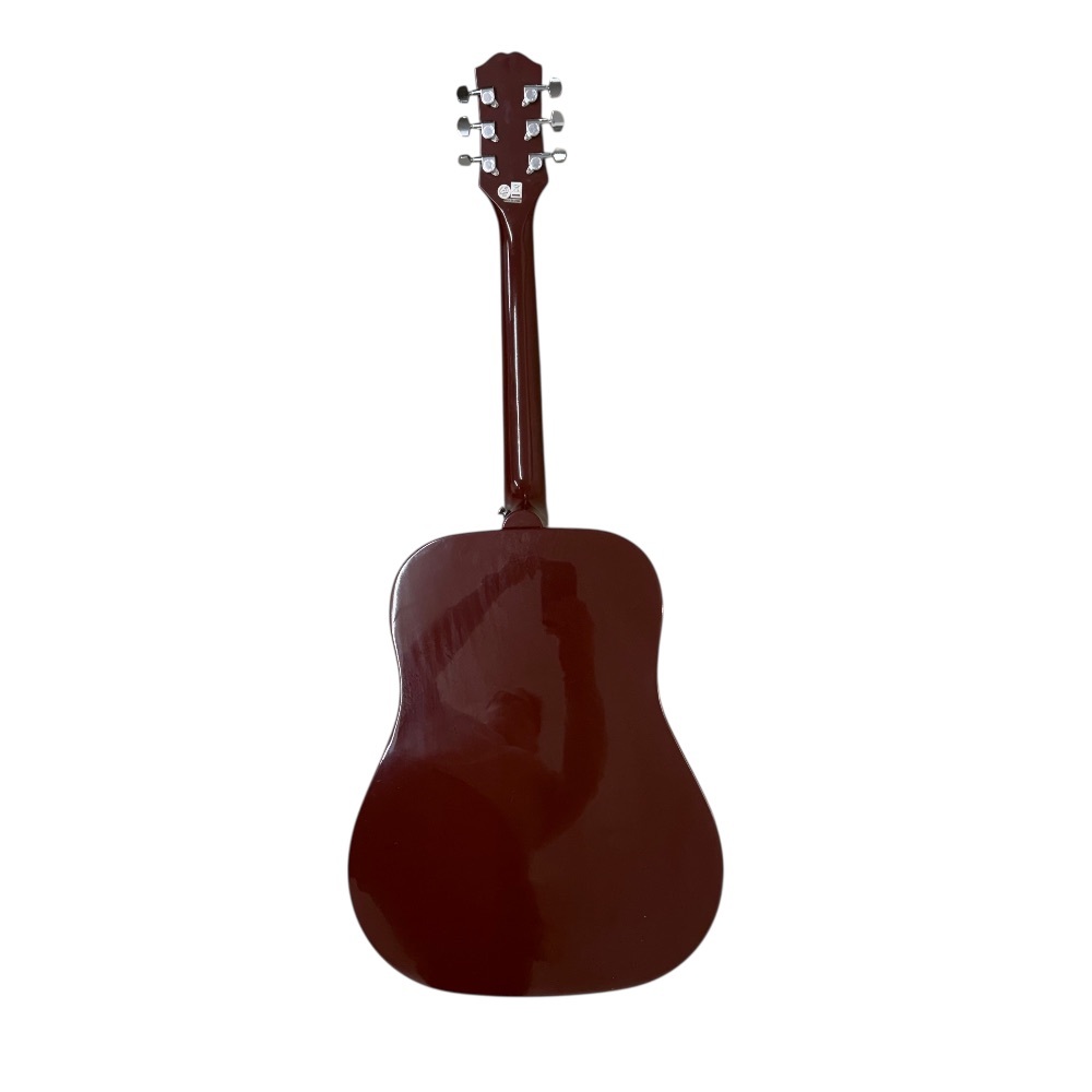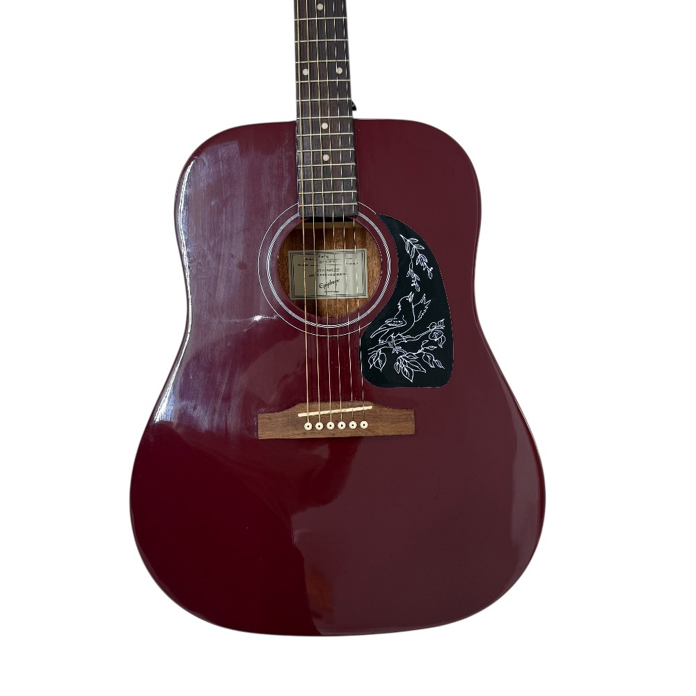 The Epiphone Starling Acoustic Guitar in Wine Red is a beginner-friendly instrument, perfect for learning. It features a Spruce top, Mahogany back and sides, and comfortable 'C' shape Okoume neck. Its vibrant wine red finish adds visual appeal, while the sound it produces is warm and rich.