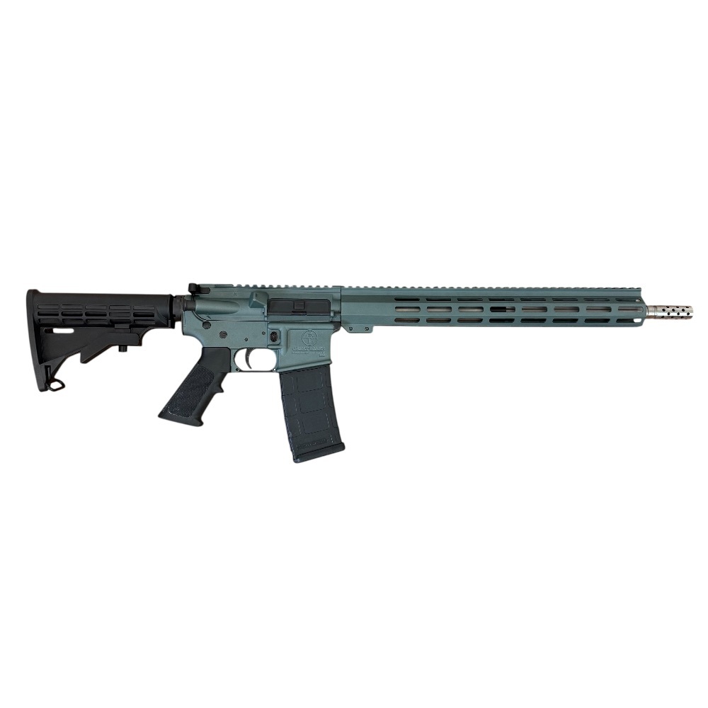 The GLFA GL-15 .223 Wylde Rifle comes with a stainless steel barrel and a 30-round magazine. It's finished in a sleek charcoal green. This high-performing rifle ensures accuracy and durability in every shot.
