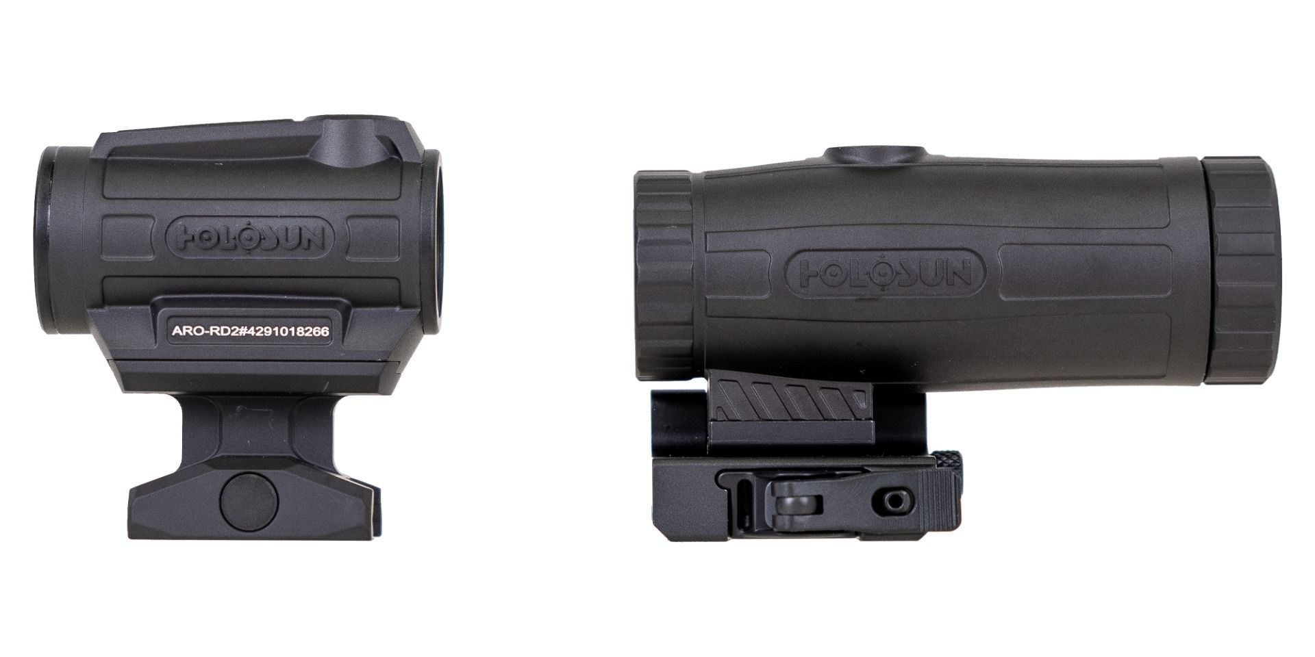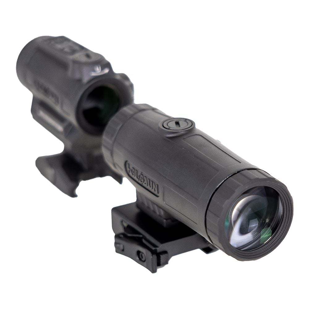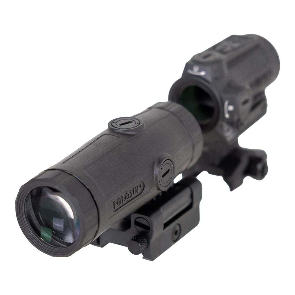 The HM3X line of magnifiers will allow the operator to seamlessly transition from unmagnified to 3X magnification. The Holosun HM3X features an adjustable diopter to dial in the desired focus, extremely clear glass, and very generous eye relief. Mounting options include an integrated QD mount with an optional spacer for Absolute Co-witness and Lower Co-witness. Holosun's HM3X comes in a durable Aluminum housing.