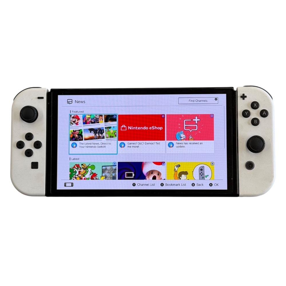 Play at home on the TV or on-the-go with a vibrant 7-inch OLED screen with the Nintendo Switch OLED console. In addition to a new screen with vivid colors and sharp contrast, the Nintendo Switch (OLED model) includes a wide adjustable stand for more comfortable viewing angles, a dock with a wired LAN port for TV mode (LAN cable sold separately), 64GB of internal storage, and enhanced audio in Handheld and Tabletop modes using the system’s speakers. Features white Joy-Con controllers, a black console, and a white dock. Enjoy immersve gameplay with the Nintendo Switch™ (OLED model) w/ White Joy-Con™ controllers.