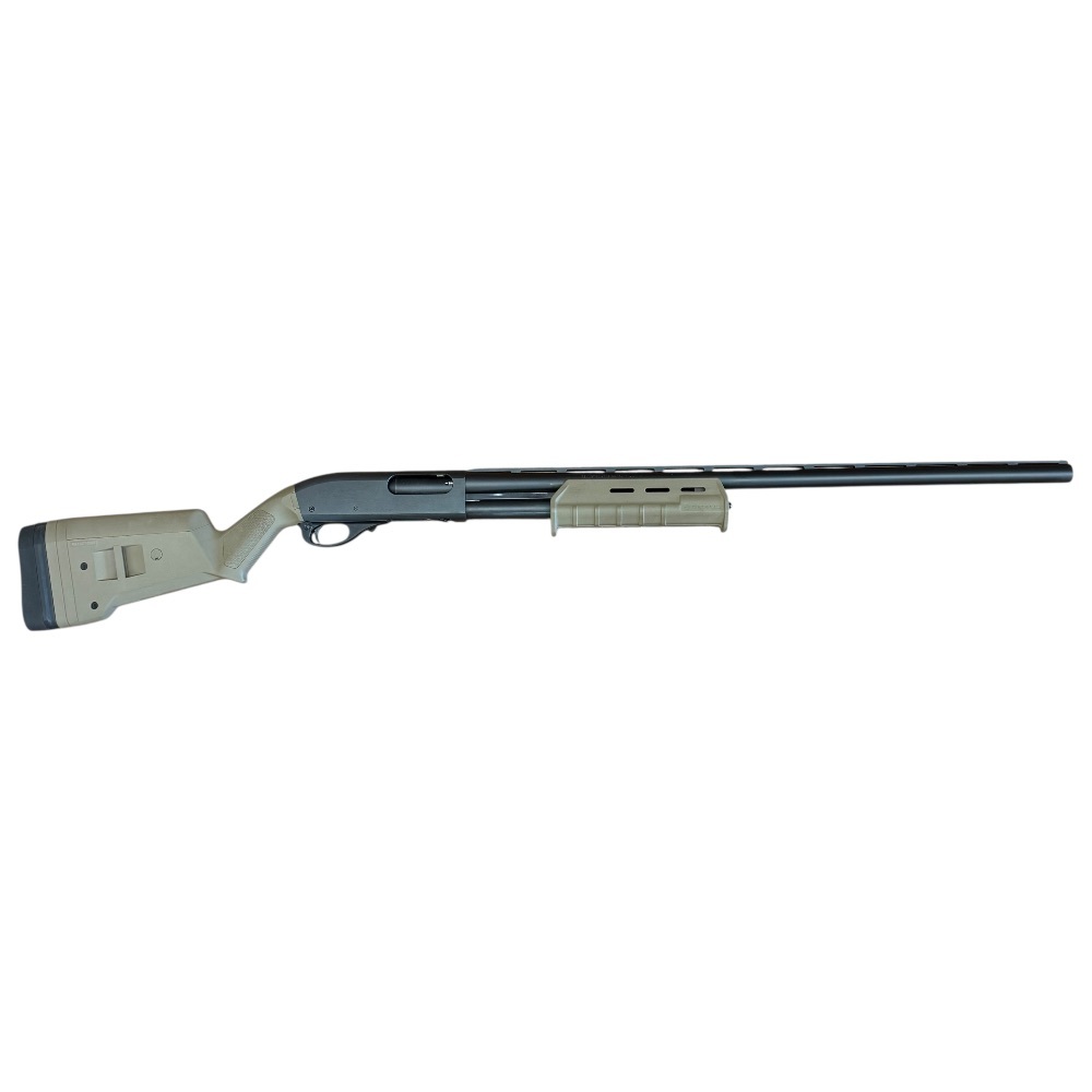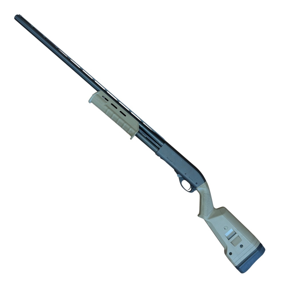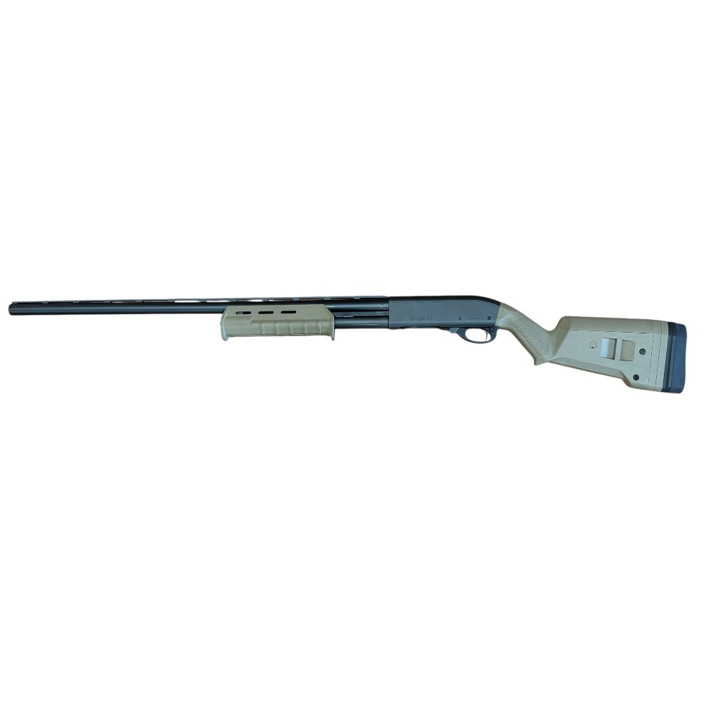The Remington 870 is a reliable 12 gauge pump-action shotgun, admired for durability and versatility. Enhanced with Magpul furniture, it includes ergonomic elements for improved performance such as adjustable stocks and forends for better control and stability. This is ideal for both hunting and home defense.