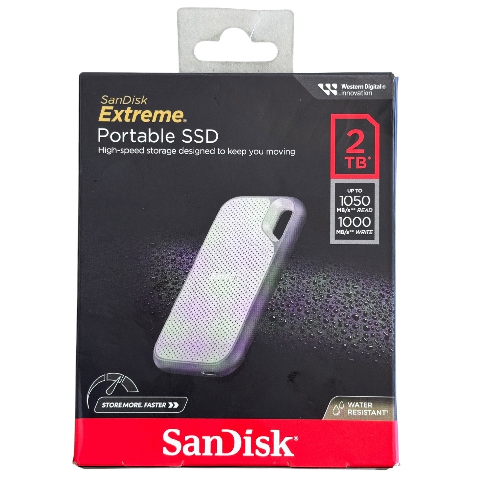 Brand new 2TB Sandisk Extreme Portable SSD in its original packaging. It offers high-speed transfers with up to 1050MB/s read speeds and is both shock and water-resistant. Ideal for content creators or tech-savvy individuals requiring large storage space with durability. It is compact, convenient, and built for a modern lifestyle.