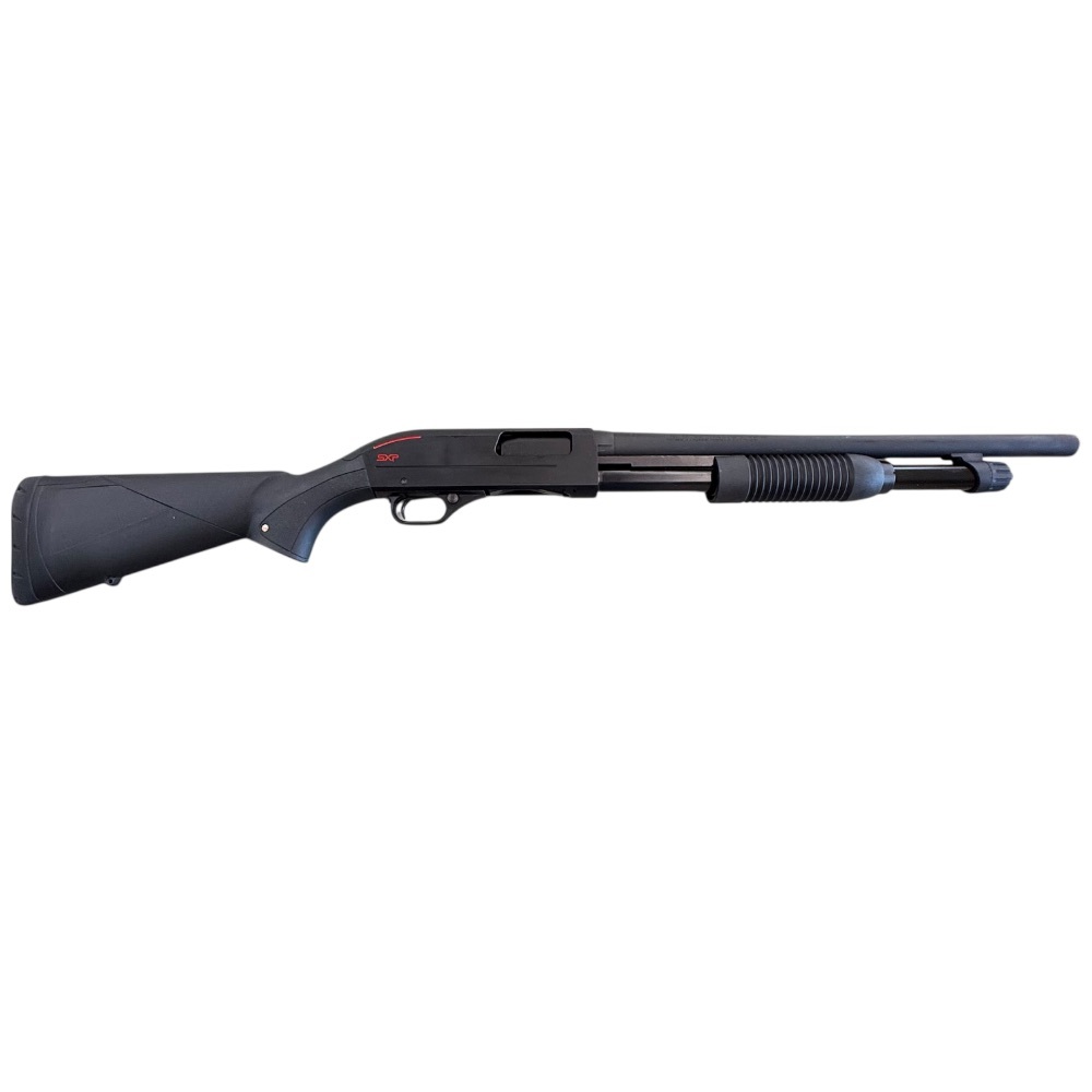 The Winchester SXP Defender 12 Gauge Pump Shotgun features an 18-inch barrel, rotary bolt, and synthetic stock. Renowned for its reliability and accuracy, it's an excellent choice for home defense. It accepts 2 3/4 and 3 shells, providing versatility and power in a compact package.